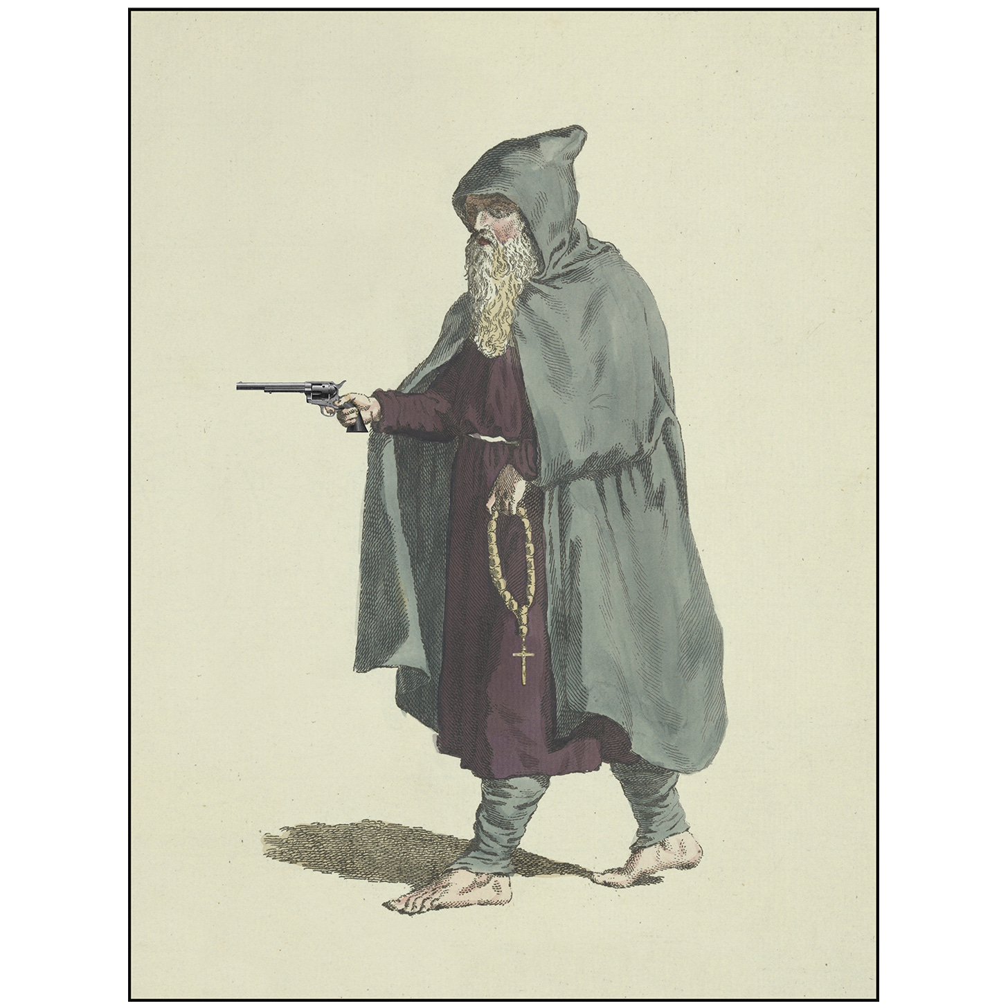 Why is he holding a pistol?